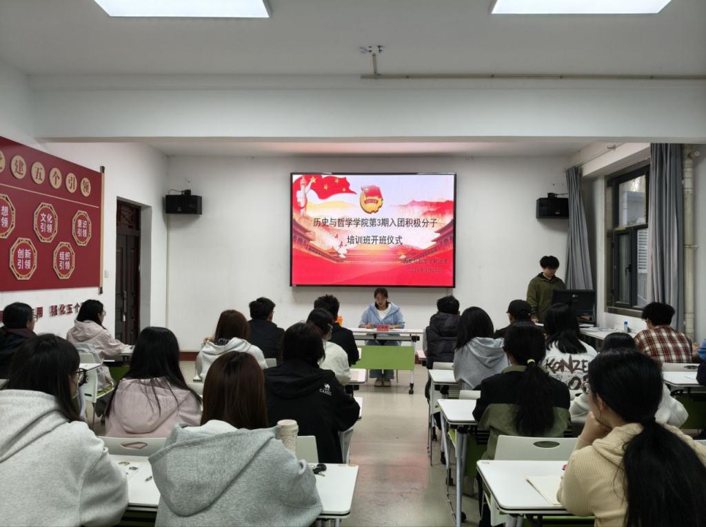 于党团活动室隆重举行第3期入团积极分子培训班开班仪式。本次仪式由学院团委书记狄云丽主持,全体入团积极分子参加。